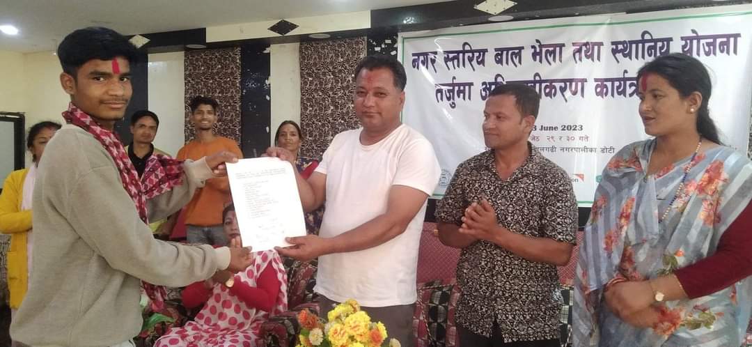डोटी । दिपायल सिलगढी नगरपालिका अन्तरगत रहेका बालबालिकाहरुको सहभागितामा आयोजना गरेको नगर स्तरिय बाल भेला तथा स्थानिय योजना तर्जुमा सम्बन्धी अभिमुखिकरण कार्यक्रम मंगलबार सिलगढीमा सम्पन्न भएको छ ।