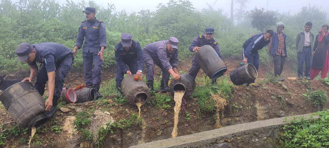 जिल्लाका विभिन्न स्थानहरुमा प्रहरीले विगतका दिनहरुमा पनि ठुलो परिमाणमा अबैध घरेलु मदिरा नियन्त्रणमा लिई नष्ट गर्दै आएको छ । यस कार्यलाई जिल्ला ब्यापी रुपमा निरन्तरता दिने जिल्ला प्रहरी कार्यालय डोटीले जनाएको छ ।
