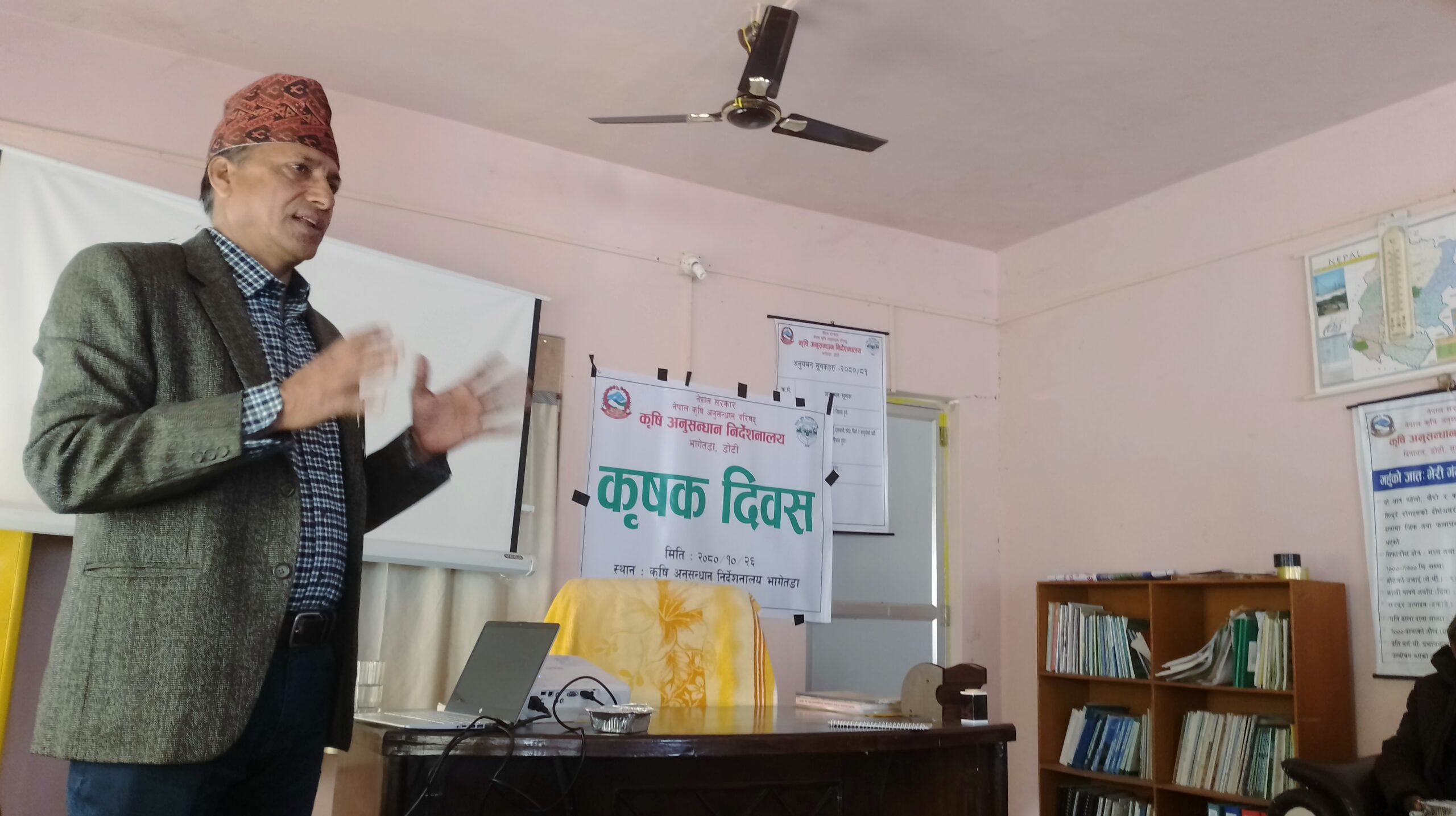 । उहाँले कृषि अनुसन्धान निर्देशनालय पुजा गर्ने मन्दिर नभए पनि ज्ञान लिने मन्दिर हो त्यसैले सबै किसानहरूले ज्ञान लिएर कृषि खेतीलाई आधुनिक तरिकाले अगाडि बढाउन प्रमुख अधिकारीले अनुरोध समेत गर्नुभएको छ । हरेक बिउहरूको गुणस्तर छ छैनन् उपचार गरेर मात्रै बेर्नाहरू छर्नुपर्ने समेत उपस्थित किसानलाई सुझाव दिनुभएको थियोे । किसानहरूलाई बाह्य अनुसन्धान गराएर परिक्षण गरी लगाएका बालीनालिहरू र तरकारी खेतीमा आएको फरक पन देखाएर थप ज्ञान हुनेगर्छ डोटी जिल्ला कृषि ज्ञान केन्द्रका प्रमुख गंगादत्त अवस्थीको भनाइ रहेको थियो